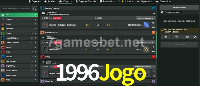O 1996Jogo oferece uma grande seleção de opções de apostas em e-sports com probabilidades competitivas